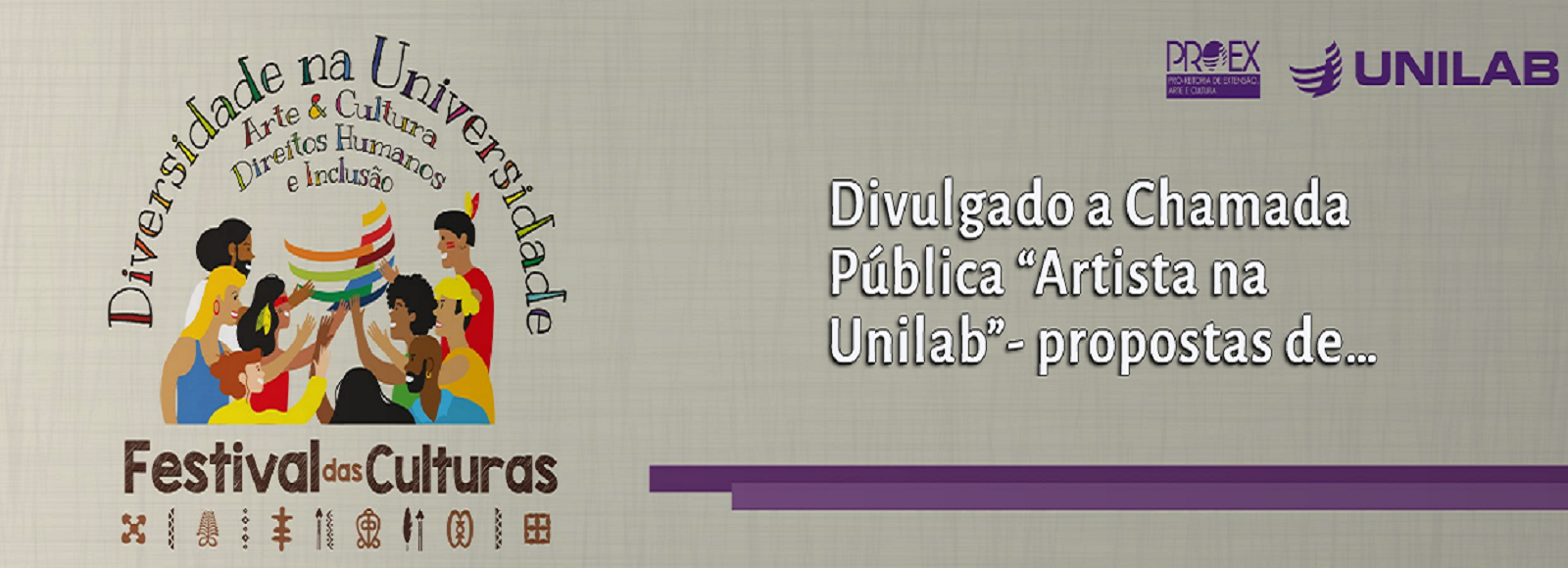 O Festival das Culturas da Unilab, realizado pela Pró-reitoria de Extensão, Arte e Cultura (Proex), por meio da Coordenação de Arte e Cultura, tem como eixo principal a integração e divulgação das manifestações artísticas e culturais presentes na Comunidade dos Países de Língua Portuguesa (CPLP). Junto a isso procura apresentar as culturas na região do Maciço de Baturité e no Recôncavo Baiano, tendo como parâmetro o modelo de cooperação Sul-Sul que sustenta a ideia da própria universidade.